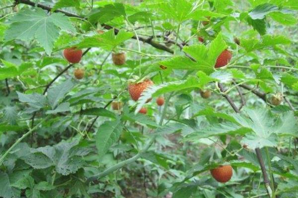 1、覆盆子枝条较细弱,结果期无法支撑果实重量,造成枝条与果实下垂,影响果实质量与田间通透性。